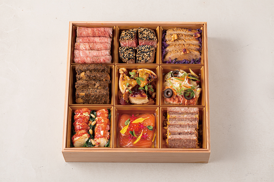 ローズホテル横浜の目にも美しい五感に響くフレンチをベースにした洋食一の重。四川料理の伝統を守りつつ、革新的な料理を盛り込んだ重慶飯店の中華二の重。伝統と美味しさを盛り込んだおせちをお届けいたします。