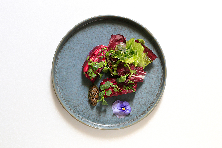 【前菜】三浦産ビーツとゴートチーズのプレッセ 柚子のタップナード