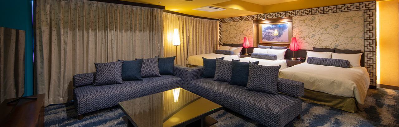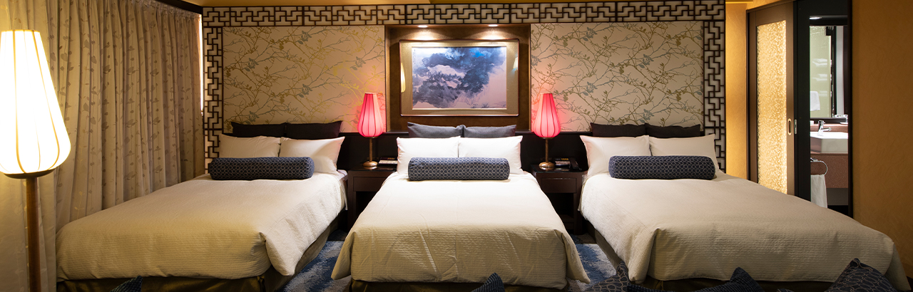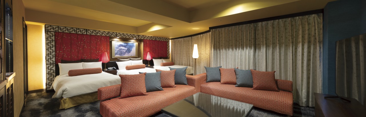 他の部屋とはインテリア・デザインを差別化したチャイニーズモダンと呼ぶにふさわしいスイートルーム。